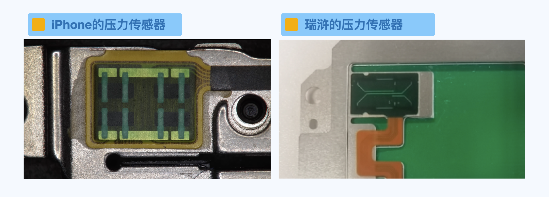 苹果采用的压力传感器与瑞浒提供的传感器高度相似,实现原理与工艺均与瑞浒采用了相同的技术路线。瑞浒提供的传感器不仅可以实现轻按效果,还可以区分轻按与重按,可以在节省一个机械按键结构的情况下实现与iPhone相同的功能。同时瑞浒已经有成熟的按键安装方案,可以在手机边框不开孔的情况下,实现按键的效果。早在数年前,国内已经有手机厂商尝试将压力传感器应用在手机上,现在瑞浒已经可以提供更加成熟、成本更低、可靠性更高、安装工艺更简单的压力传感器解决方案。